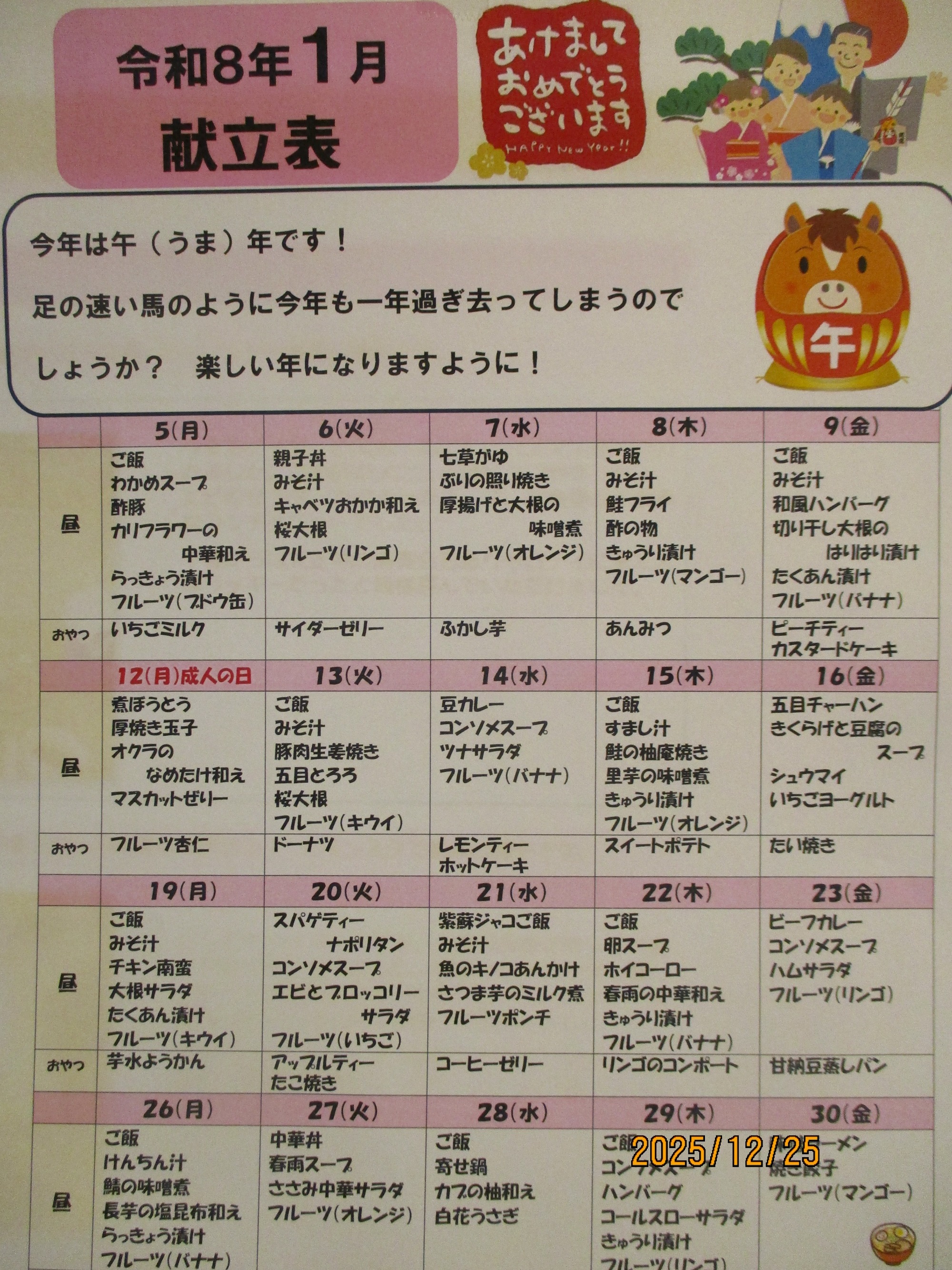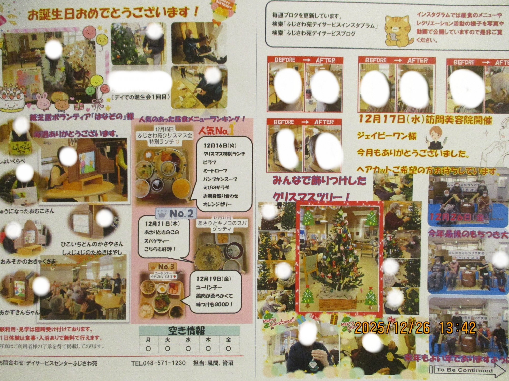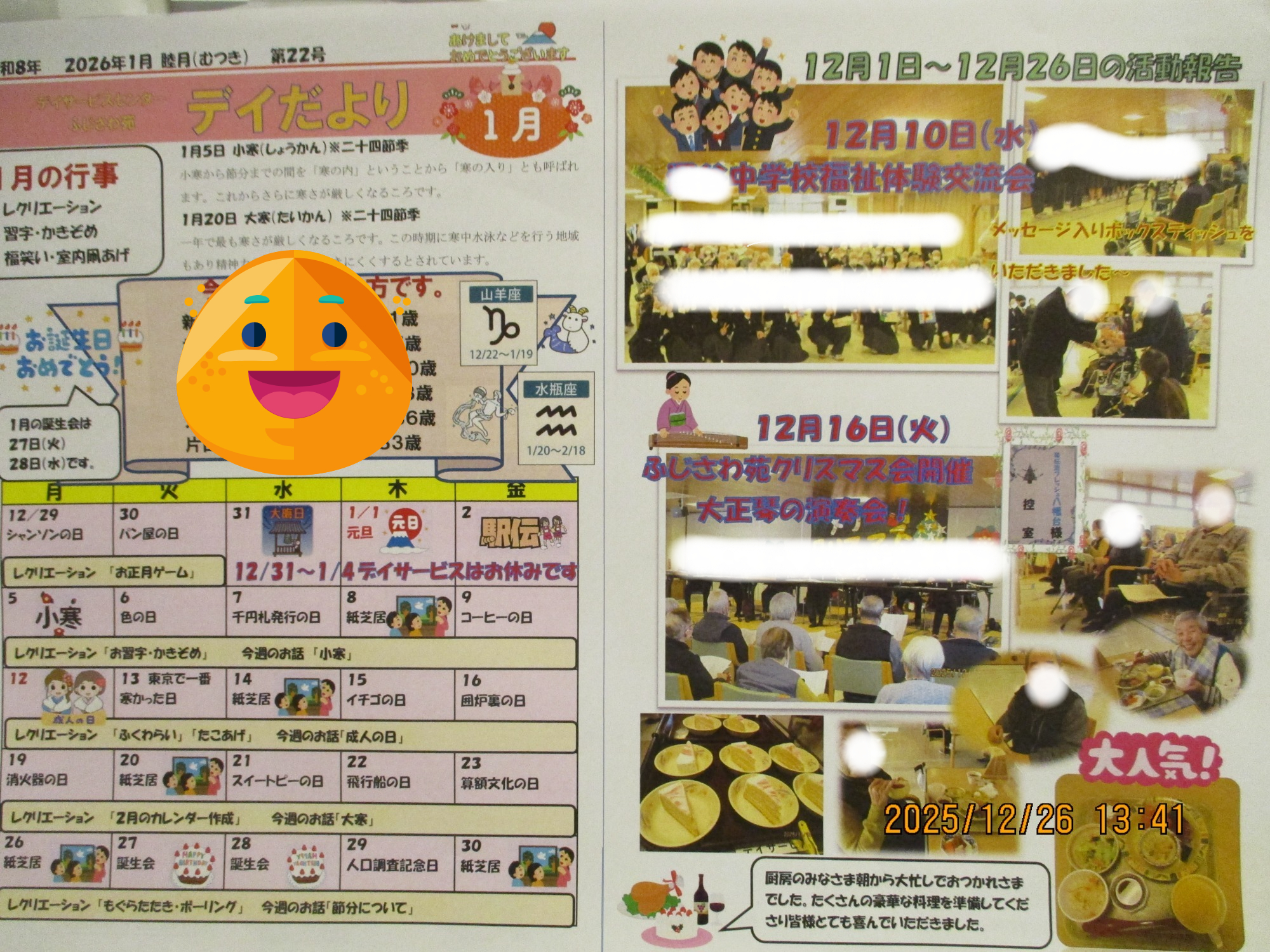 デイだより2026年1月号が完成しました。来月のお知らせや活動報告などが掲載されています。