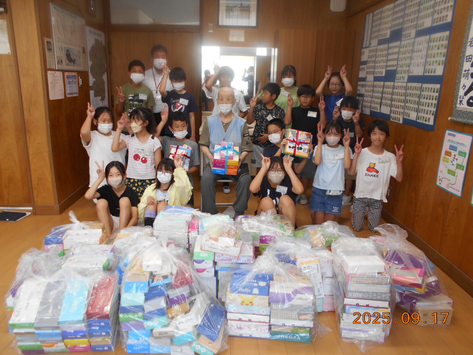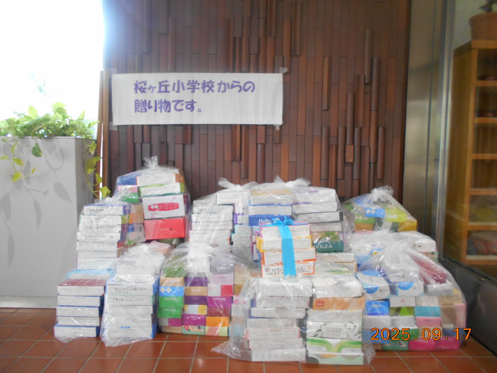 頂いたたくさんのテイッシュペーパーは、現在施設玄関に披露をしています。