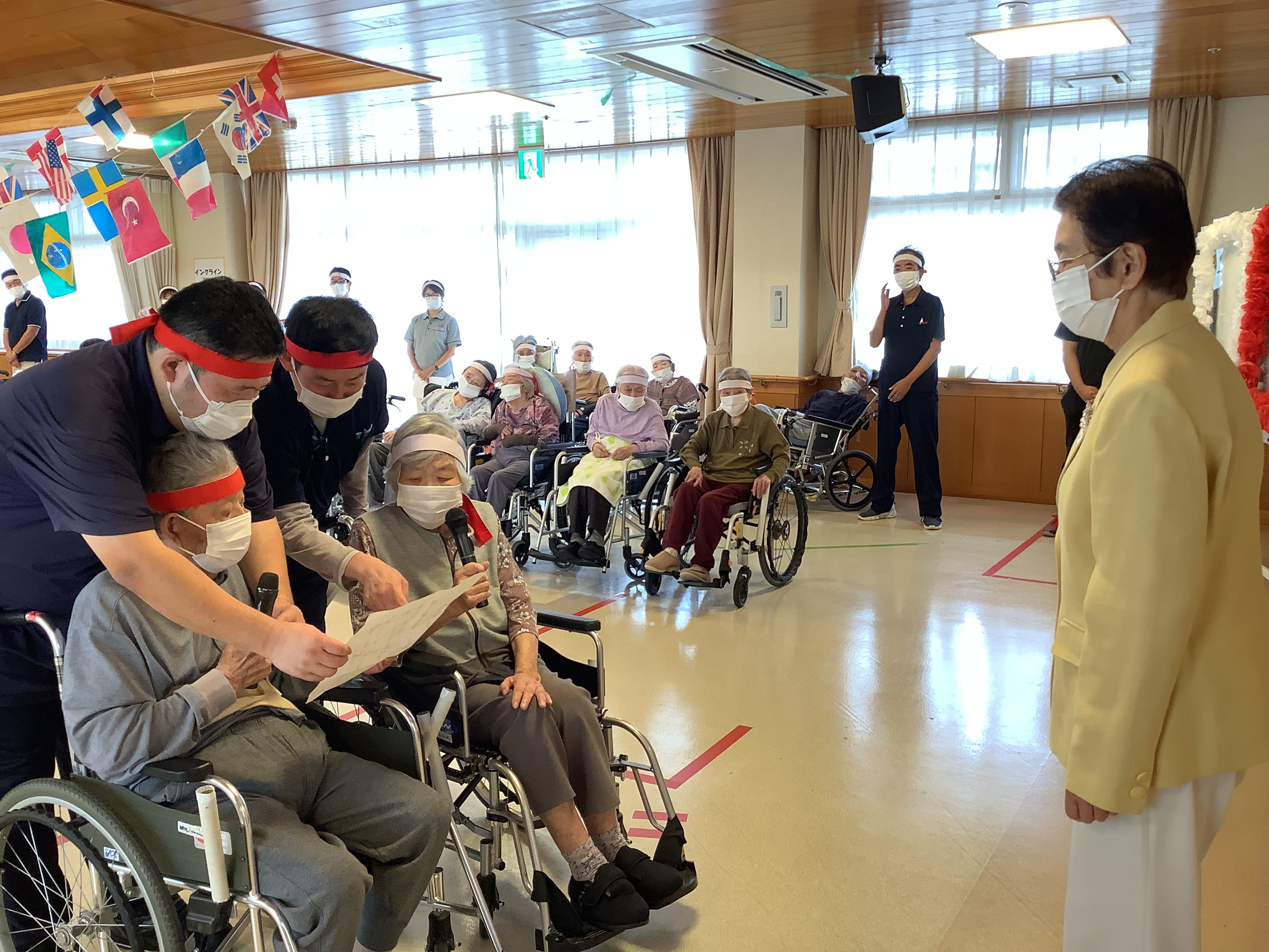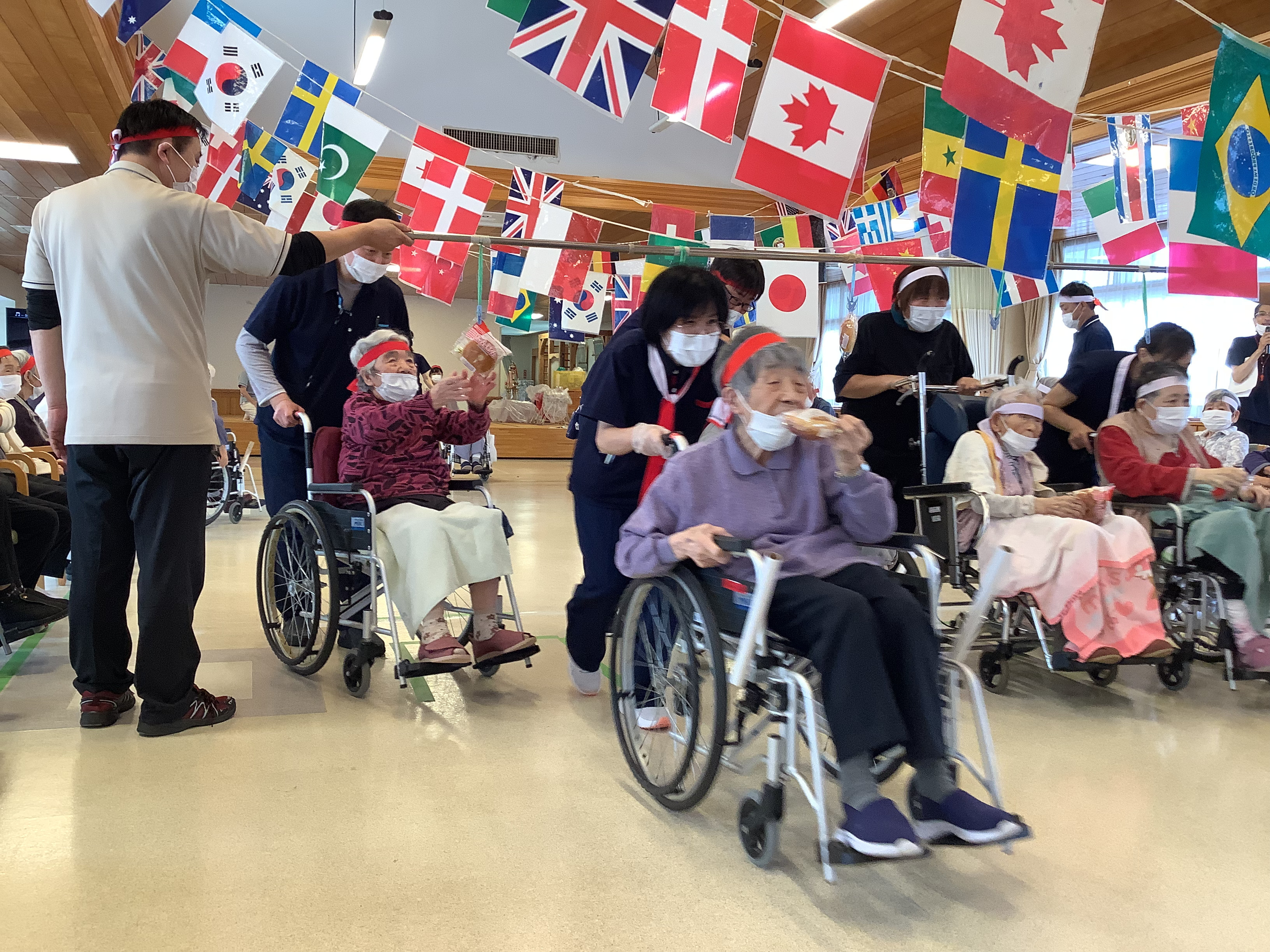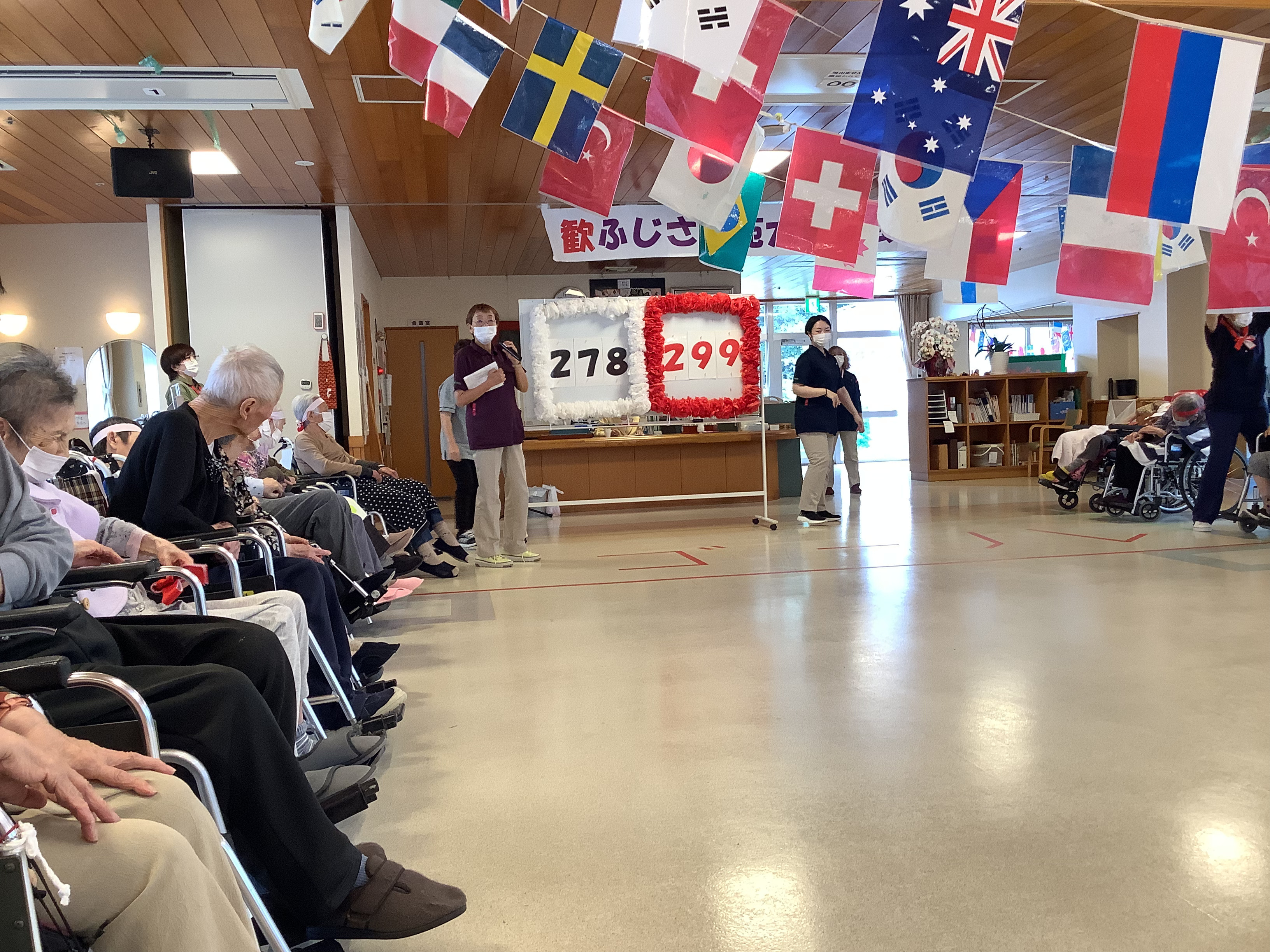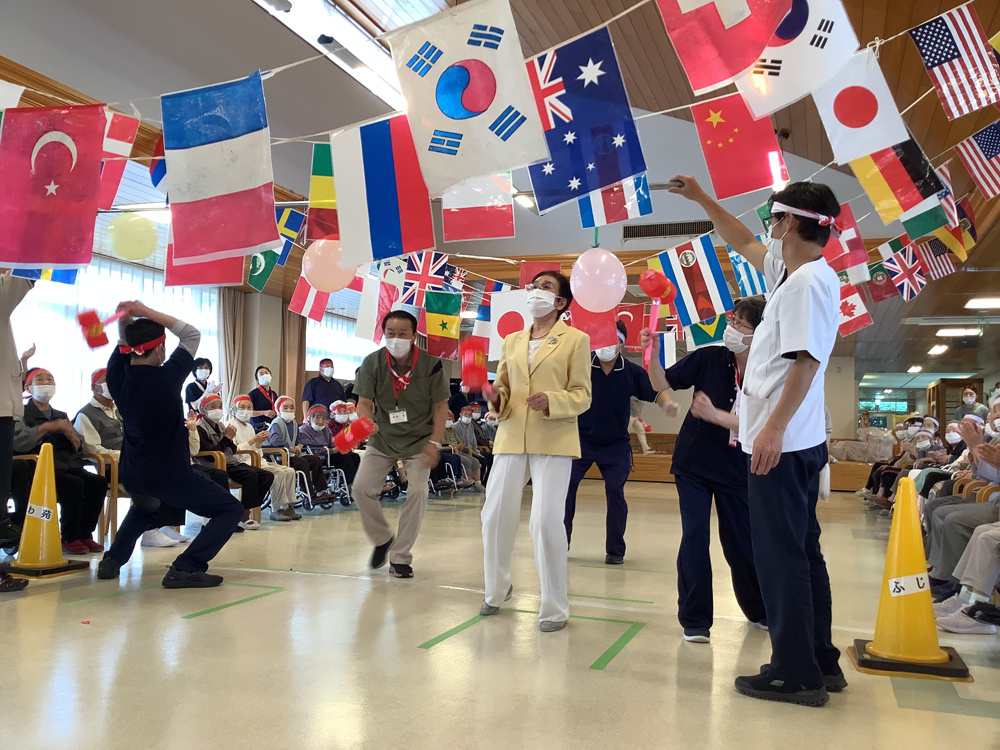 今年は、紅白どちらが優勝するのでしょうか。特養のご利用者は、レクリエーションで練習を重ねてきた成果を出していただきたいです。